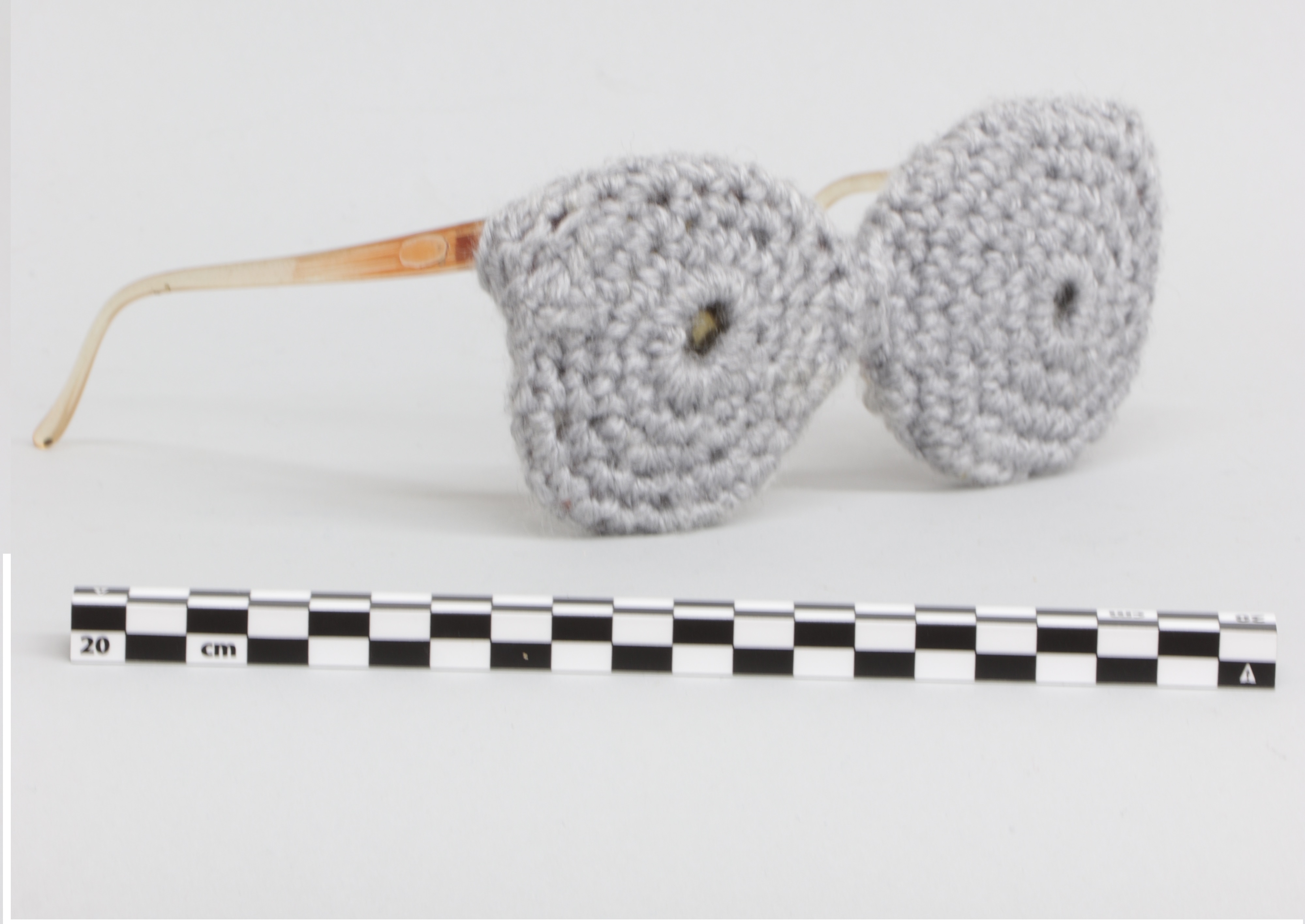 Esta pieza es un objeto de uso cotidiano, especialmente se trata de unas gafas de sol con patillas de plástico. Después de pasar por las manos del artista ha sido transformada en obra de arte gracias al revestimiento textil en tela de fieltro que ha colocado en sus lentes con el propósito de evocar al pasado y a las emociones que contiene dicho objeto.