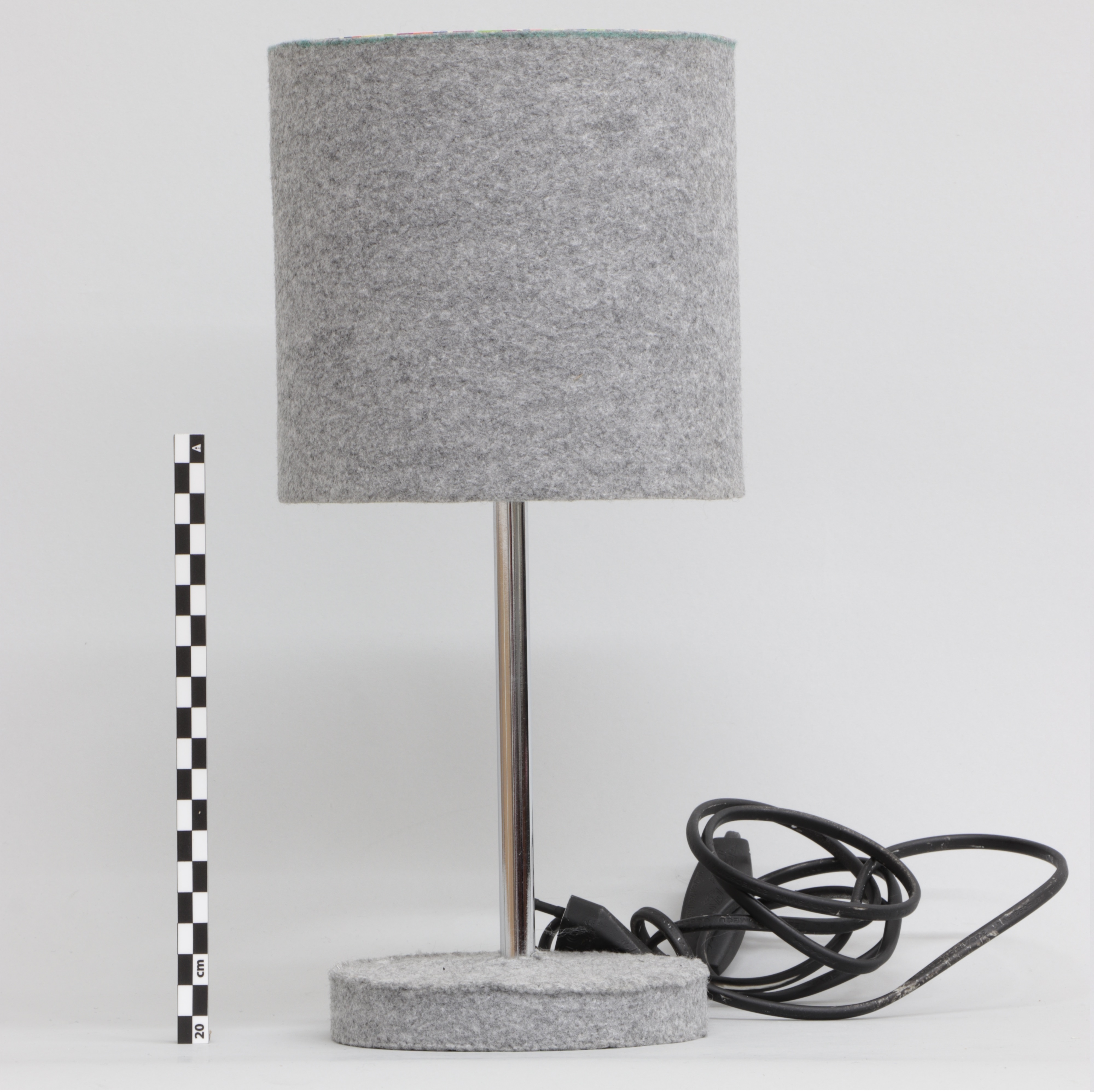 Esta pieza es comúnmente denominada lámpara de mesa, entre sus partes está formada por tulipa, y base de apoyo, además de la rosca para colocar la bombilla y un cable para conectarla a la red eléctrica. Después de ser revestida con tela de fieltro gris por el artista ha paso a ser considerada una obra de arte conceptual que encierra los recuerdos de su diseñador.