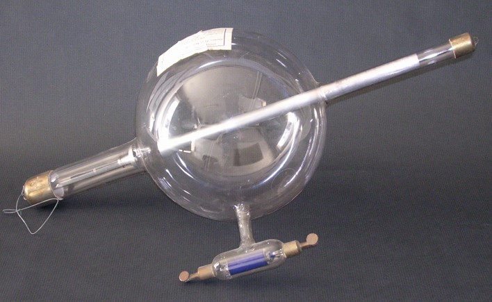 Tubo de Crookes o de cátodo frío, fabricado entre 1905 y 1925, para la producción de rayos X. Se trata del primer modelo de tubo cuyo funcionamiento dependía de la aplicación de una corriente continua no superior a 100Kv que aceleraba e ionizaba el gas de su interior produciendo fluorescencia.