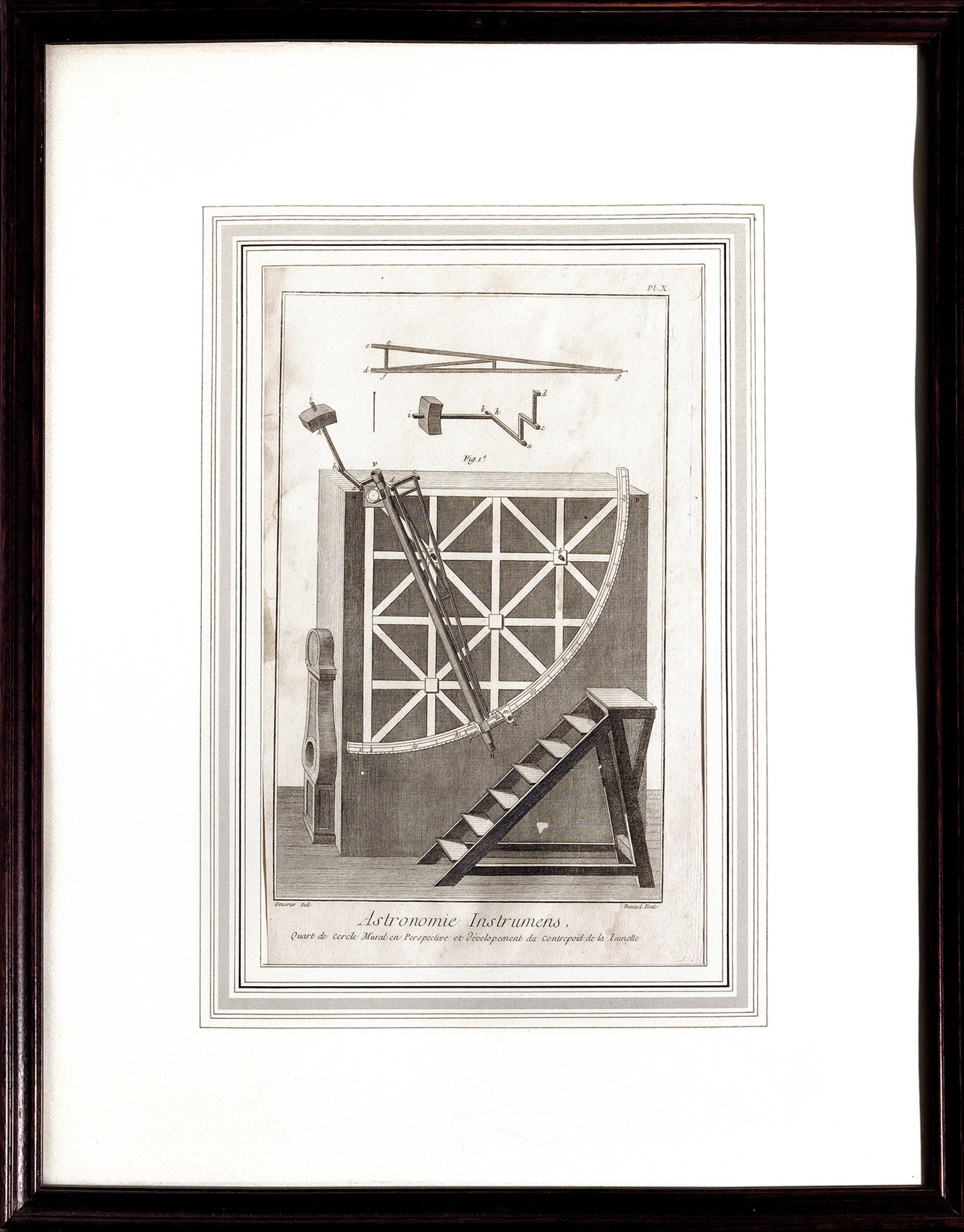 Astronomie, Instrumens. Quart de cercle Mural en Perspective et dévelopement du contrepoid de la lunelle