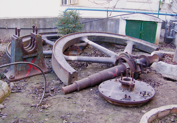 Esta pieza es parte integrante de una máquina de vapor y forma conjunto con otras cinco piezas más: bomba de vacío, volante de inercia, soporte del eje del volante.