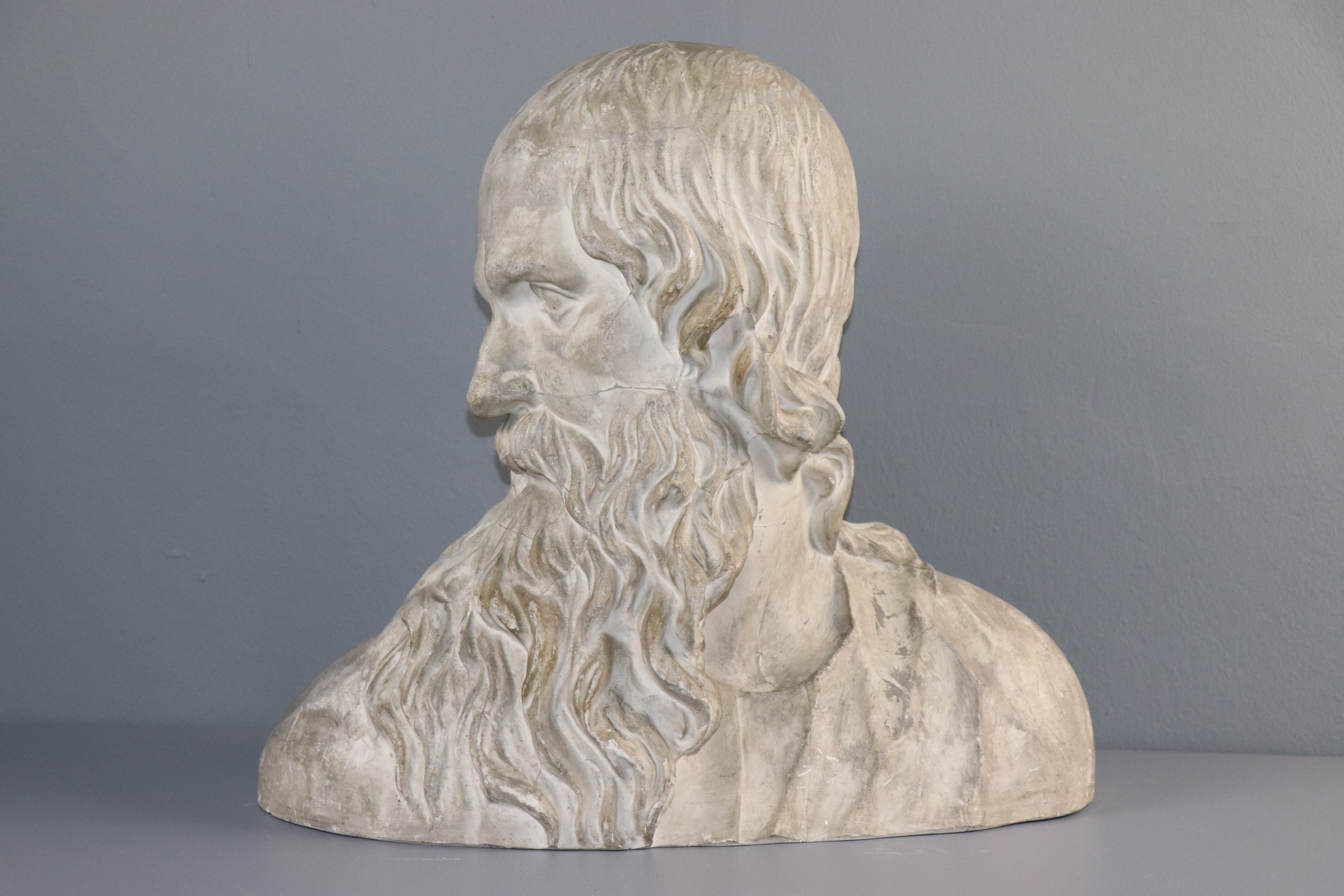 Busto escultórico hecho en escayola a partir de un molde que representa a San Pablo. Al igual que otros bustos de Morales Alguacil, muestra un cuidadoso tratamiento de la anatomía del rostro, logrando infundirle un trasfondo psicológico; al tiempo que presenta un gran naturalismo que se realza a través del movimiento y de la ondulación de los cabellos y la barba del santo.