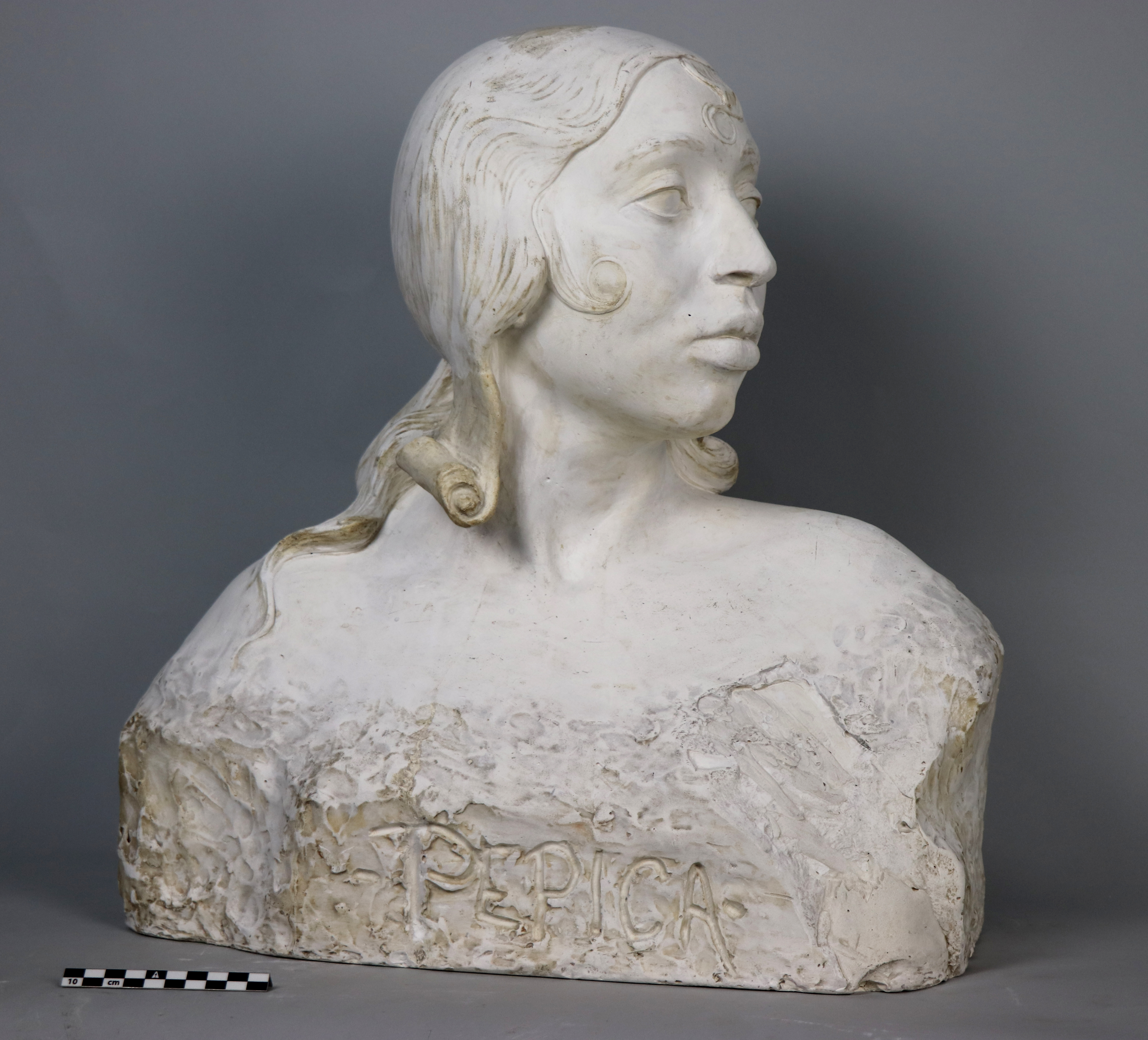 Busto escultórico ejecutado en la técnica del vaciado en escayola, que representa el retrato de una mujer cuya identidad se desconoce más allá de su denominación como “La Pepica”. En su ejecución, se aprecia el estudio previo que el artista debió realizar en lo referido al conocimiento anatómico y a las proporciones de la pieza. Así pues, hay que destacar la minuciosidad en los detalles del cabello que transmiten un profundo naturalismo al rostro, sobre todo a través de sus ondulaciones y caracolillos que recuerdan a las grandes cantantes de copla y flamenco españolas de los años 30 (en especial, Estrellita Castro).
