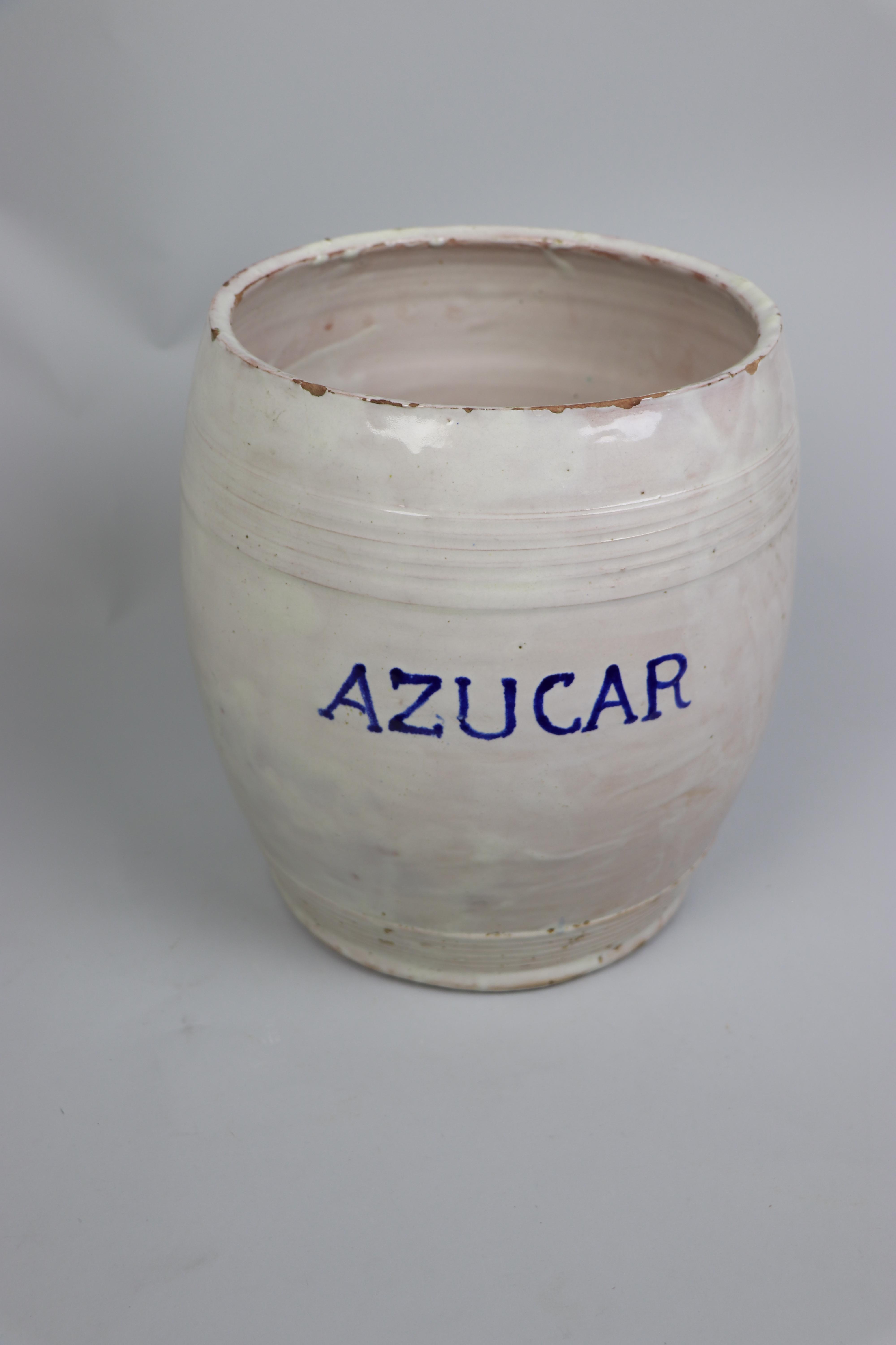 Del mismo modo que las orzas, esta tipología de recipiente cerámico con forma de barril se ha utilizado tradicionalmente para la conservación de alimentos, de manera que se realiza para atender la demanda de recipientes de uso doméstico. La inscripción en la panza del barril indica el alimento para el que ha sido concebido: "Azúcar".