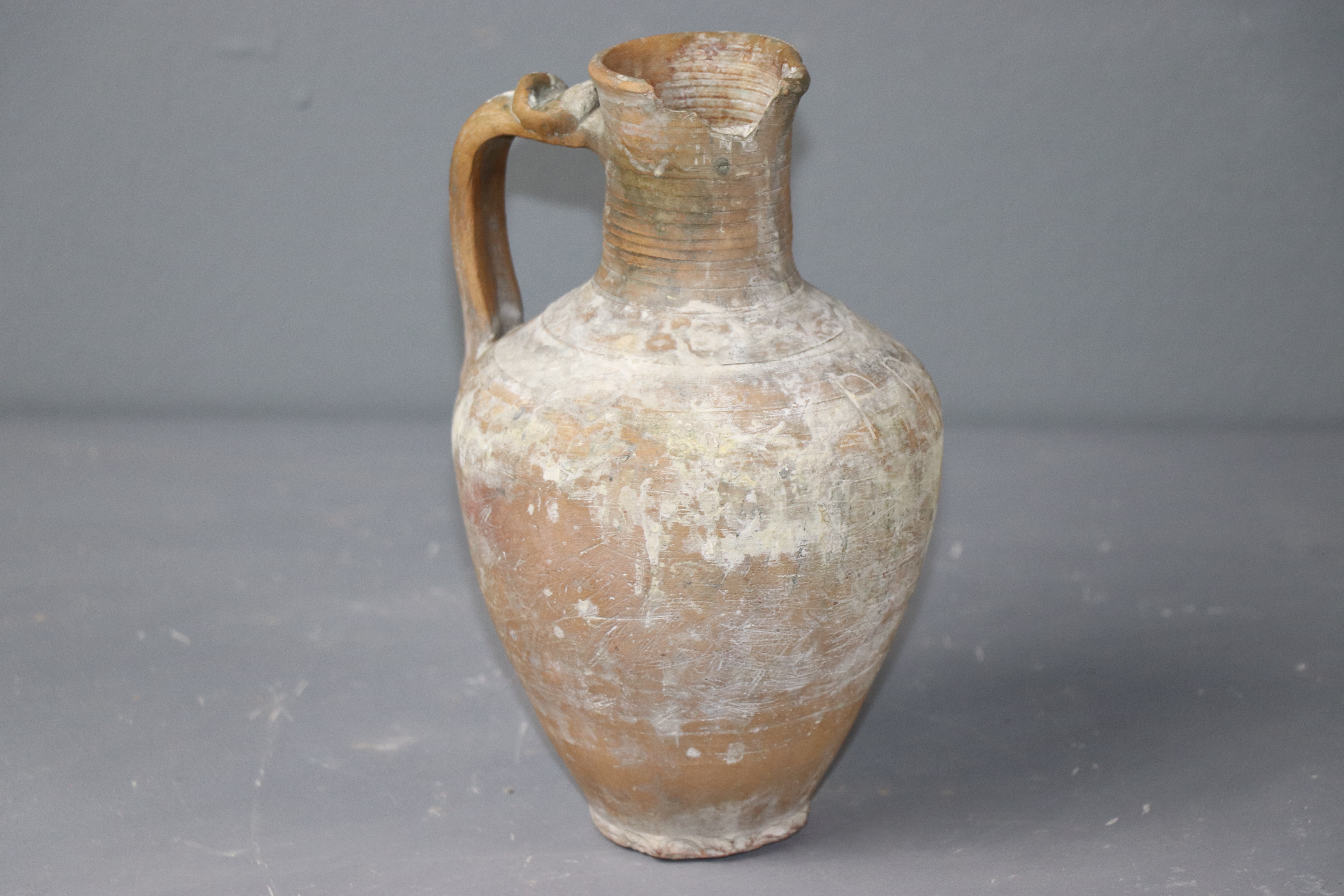 Botijo modelado en arcilla y torneado en pella chica que, probablemente, era utilizado por el pintor de la cerámica para verter agua en el esmalte.