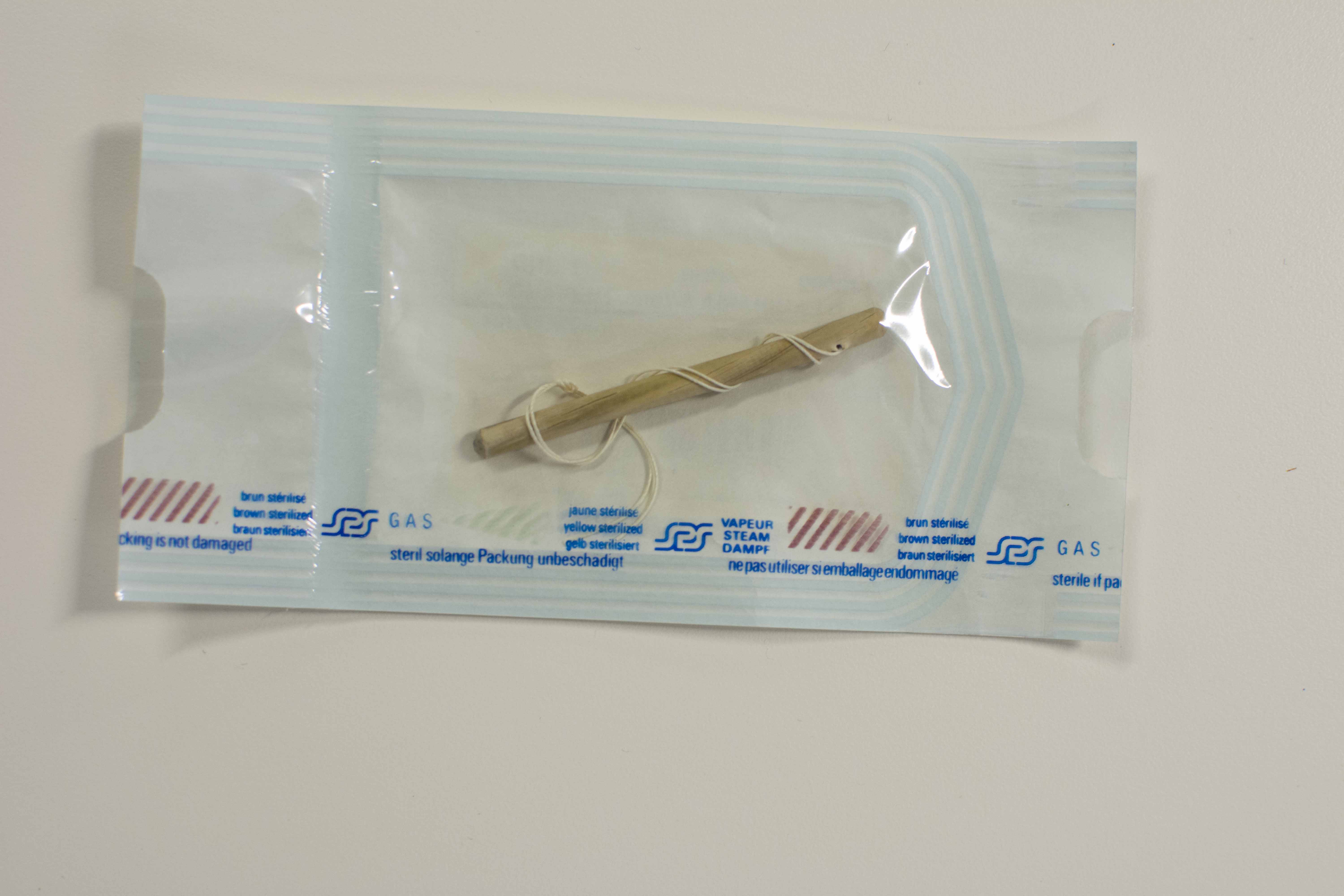Dilatador uterino realizado utilizando diferentes especies de alga del género Laminaria, con un hilo de algodón sujeto a uno de los extremos a través de un agujero en la pieza principal. De aspecto pulido y suave, se utiliza para ensanchar de forma progresiva el cuello uterino durante el parto o para facilitar el acceso a la cavidad endometrial para la posterior introducción de instrumentos quirúrgicos en intervenciones que se realizan en el interior del útero.