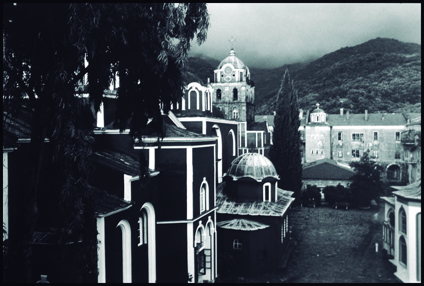 Estas fotografías responden a un trabajo científico y cultural realizado por cuatro profesores de la Facultad de Bellas Artes de Granada en septiembre de 2003, consistente en un viaje por el espacio y el tiempo, a través de la naturaleza y la cultura del Monte Athos  que ocupa la península más oriental de las tres que se extienden al sur de la Península Calcídica, situada en Macedonia Central en el norte de Grecia.