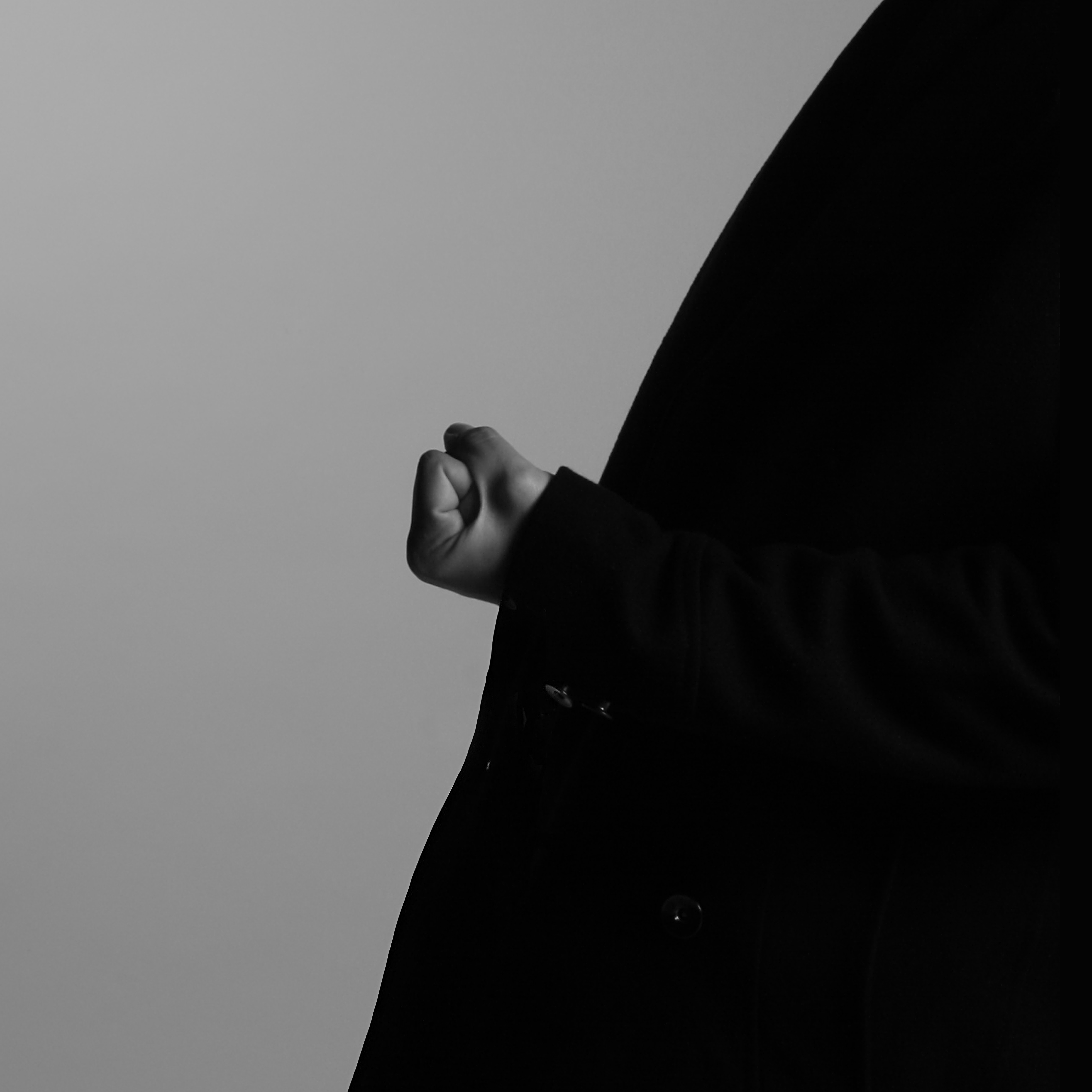 La tercera fotografía de la serie destaca por su composición diagonal, donde se evidencia un interesante juego con un amplio campo de vacío en la imagen. De una mancha de intenso negro textil emerge un puño violentamente cerrado que se recorta sobre el fondo vacío adquiriendo total protagonismo.