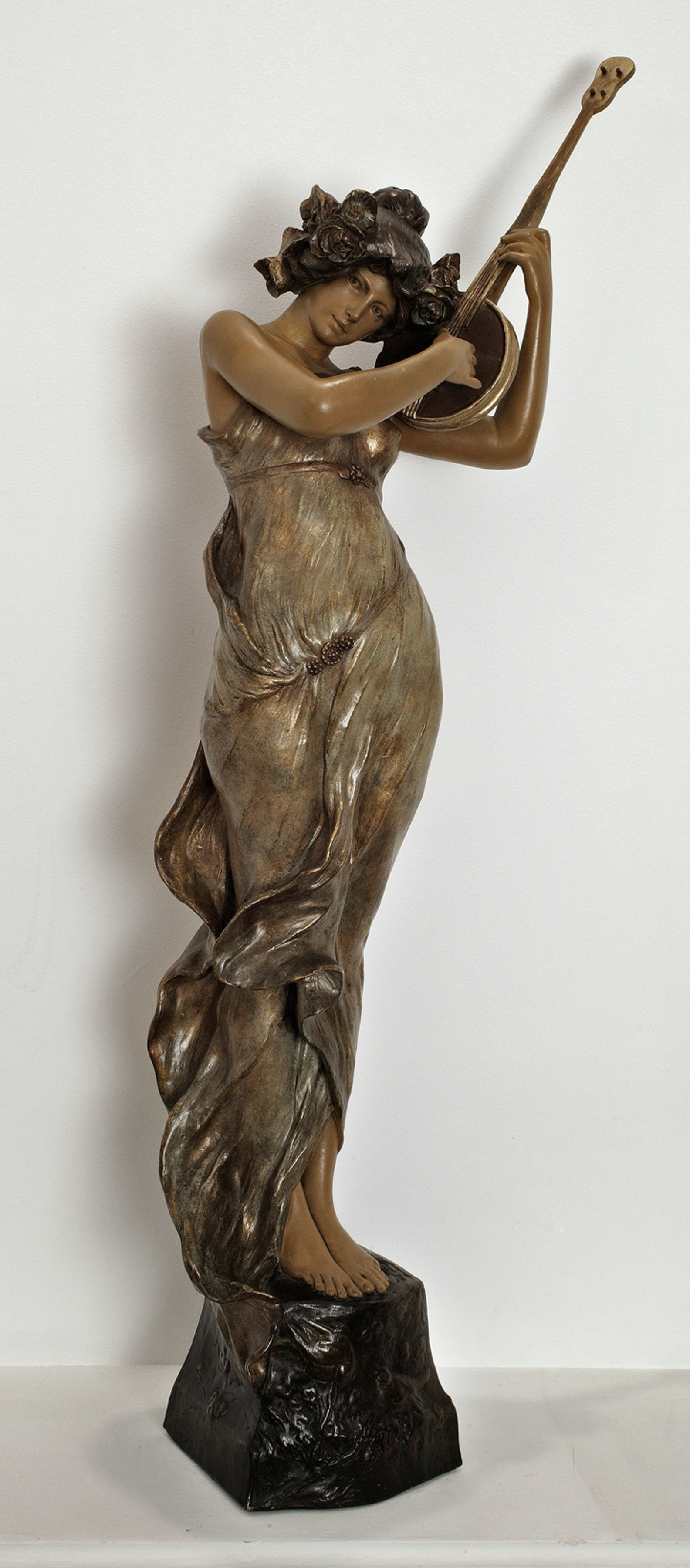 Se trata de una joven muchacha con el pelo recogido y tocado con flores. Viste ceñida túnica verde y dorada, ajustada a la cadera y bajo el pecho por un cinto. Sostiene la citara con la mano izquierda y la toca con la diestra acercando su oído en un gesto que recuerda el trabajo de afinación de este instrumento. Descansa sobre un pedestal troncopiramidal con pequeñas aves y flores en los laterales.