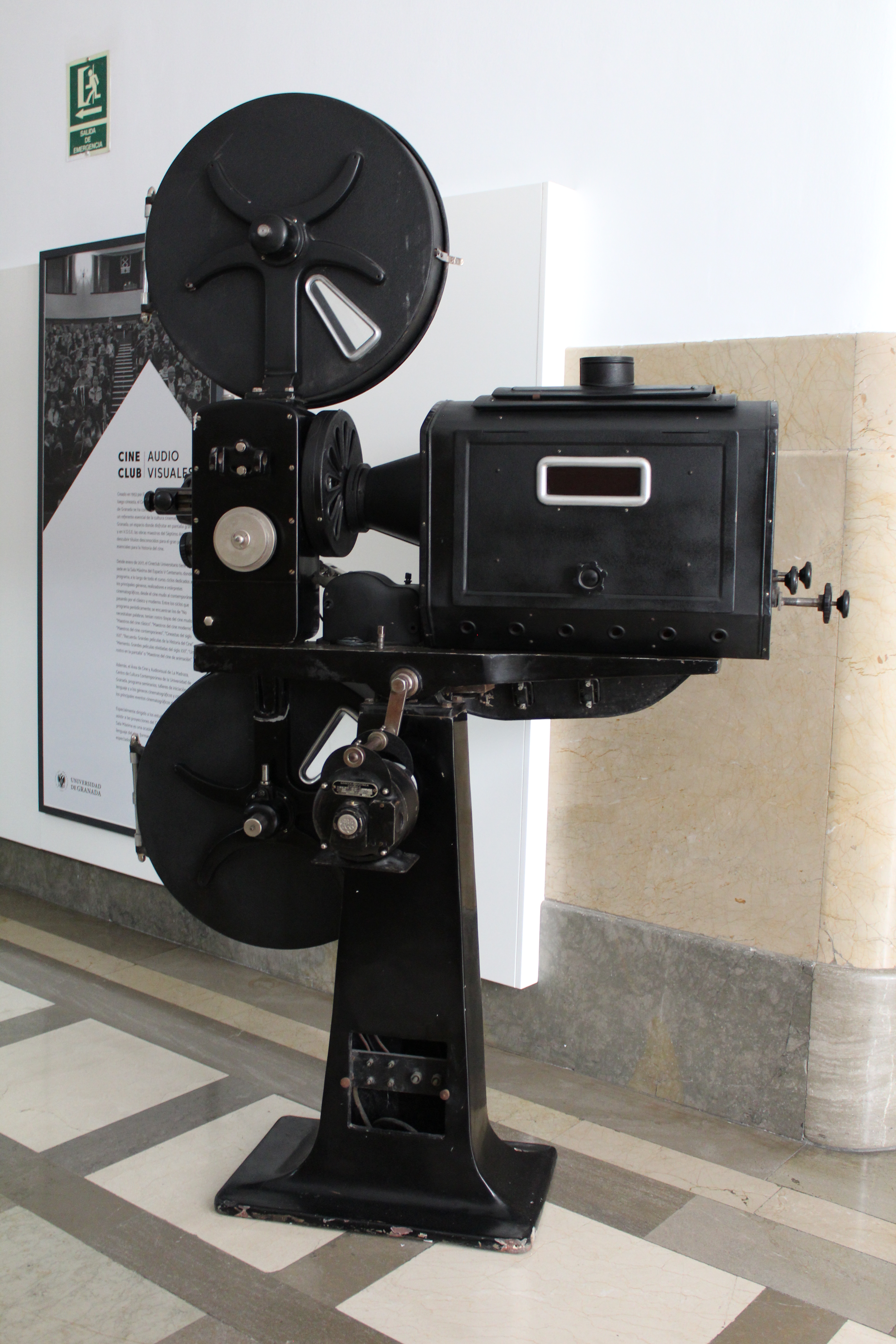 Se encuentra frente a la entrada a la Sala Máxima de Espacio V Centenario ya que es en este lugar donde se ubica el cine club universitario de la Universidad de Granada.