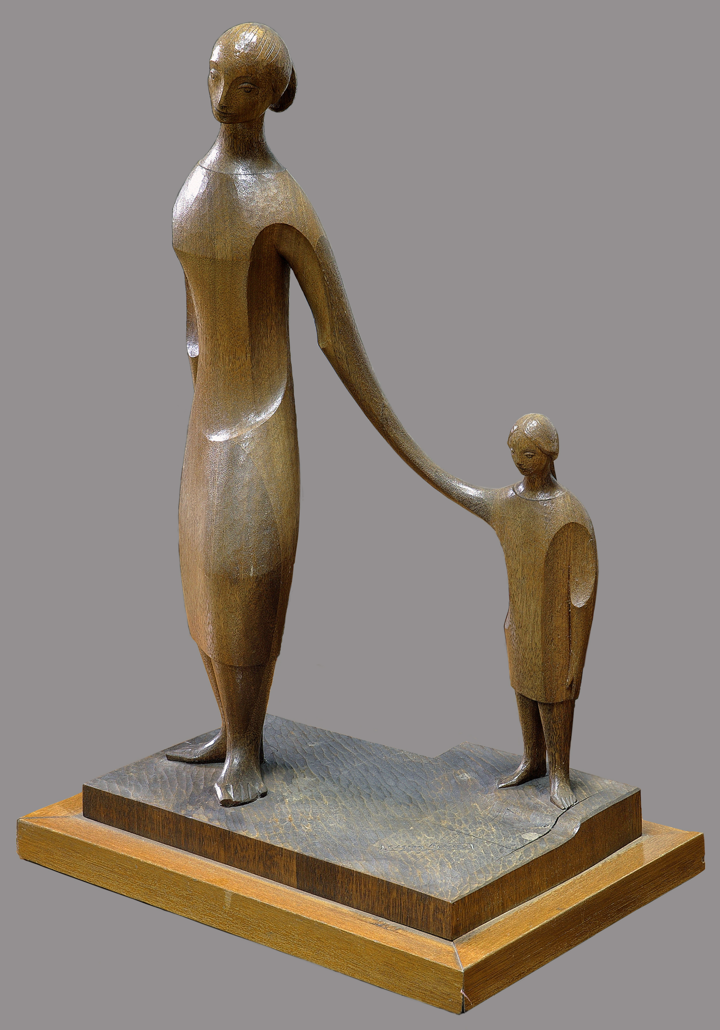 Caminando es una obra relevante en la carrera artística del escultor granadino Castro Vílchez (1938) con la que obtuvo el Premio "Alonso Cano" de escultura en 1971. Lo forma un grupo escultórico compuesto por una mujer, cuyo brazo se une al de una niña, que permanece en un plano más retrasado. Todo ello se talla, atendiendo más a la rotundidad de la masa que a lo anecdótico, en un complejo juego de curvas y contra curvas. Se apoya sobre una peana plana recortada, presentando gran semejanza con la obra "Colegiales" (1972), aunque más naturalista, pero heredera de líneas inspiradas en Henry Moore o Constantin Brancusi. El artista se manifiesta aquí enmarcado por los rasgos que caracterizan su segundo período en los años setenta. En la peana de la obra aparece la inscripción de autoría: "J.A. Castro Vílchez". En este grupo, como dice el Dr. Emilio Villanueva, "la emoción unida a la estilización formal del primer período llega a sus cotas más altas". Sin embargo, se observa una evolución hacia el abandono del carácter melancólico, debido a la síntesis de las formas.