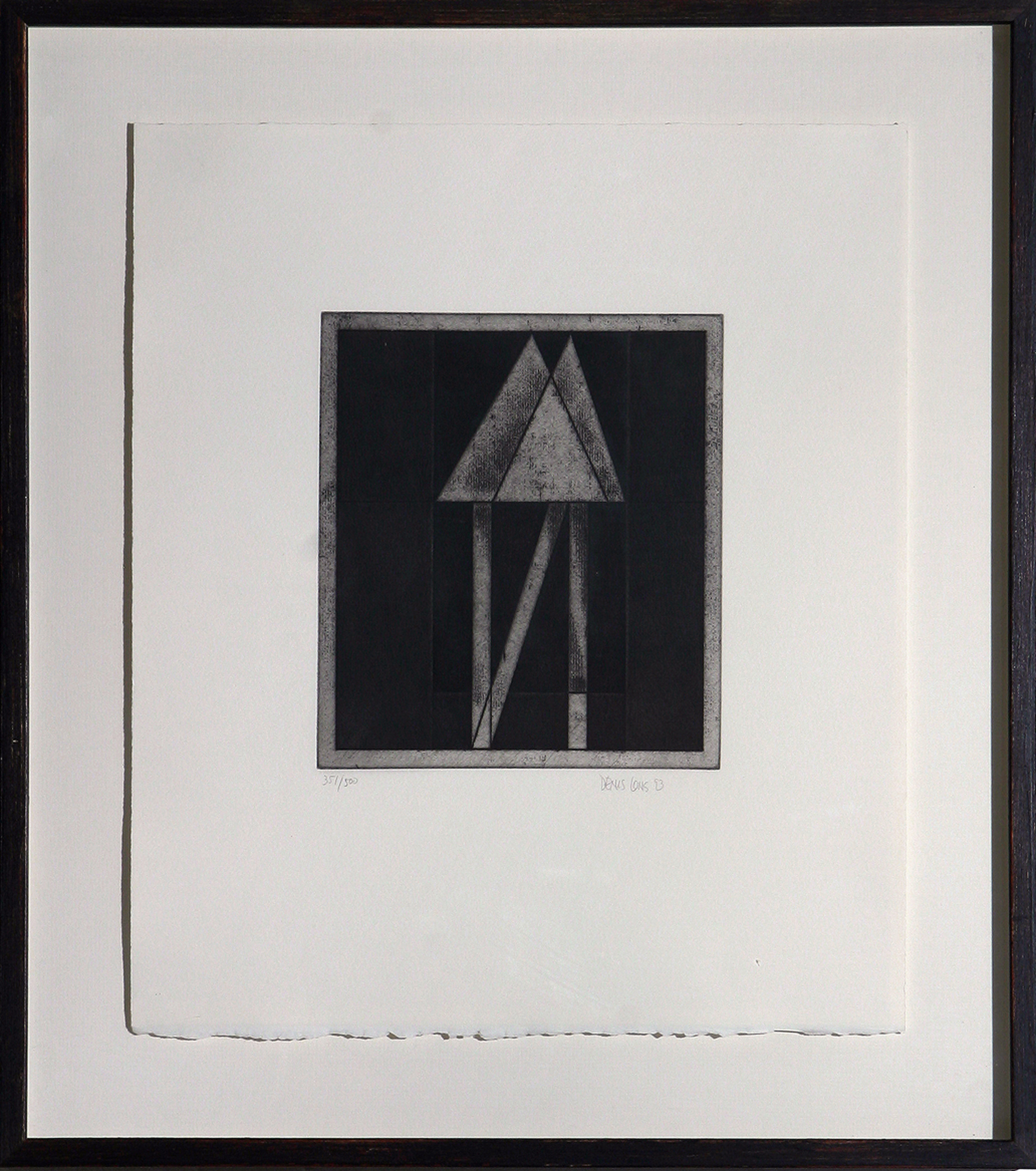 En el margen inferior de la obra y fuera de la mancha aparecen las siguientes inscripciones a grafito: "Denis Long 93" en el ángulo derecho y "351/500" en el izquierdo.